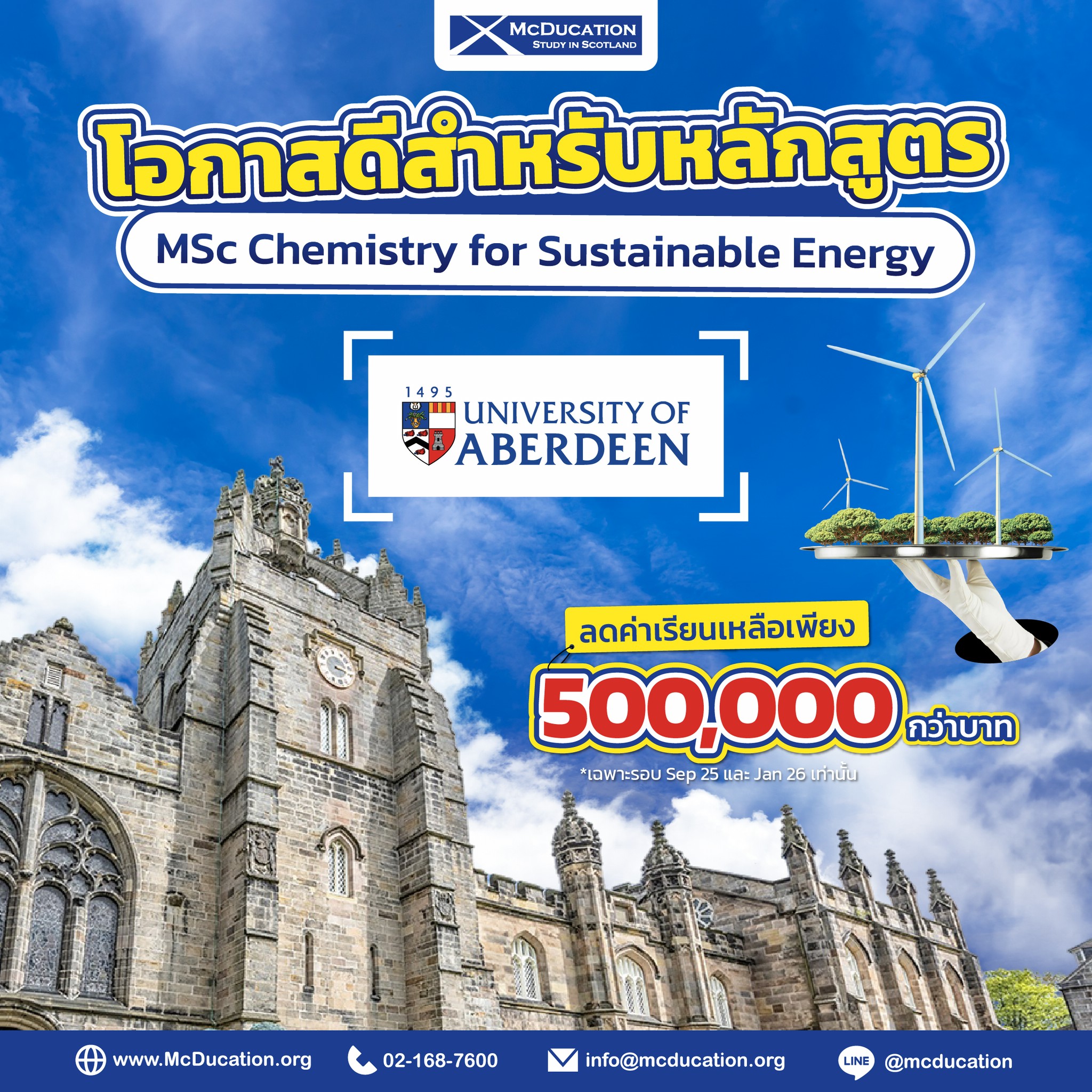 โอกาสดีสำหรับหลักสูตร MSc Chemistry for Sustainable Energy ที่ University of Aberdeen