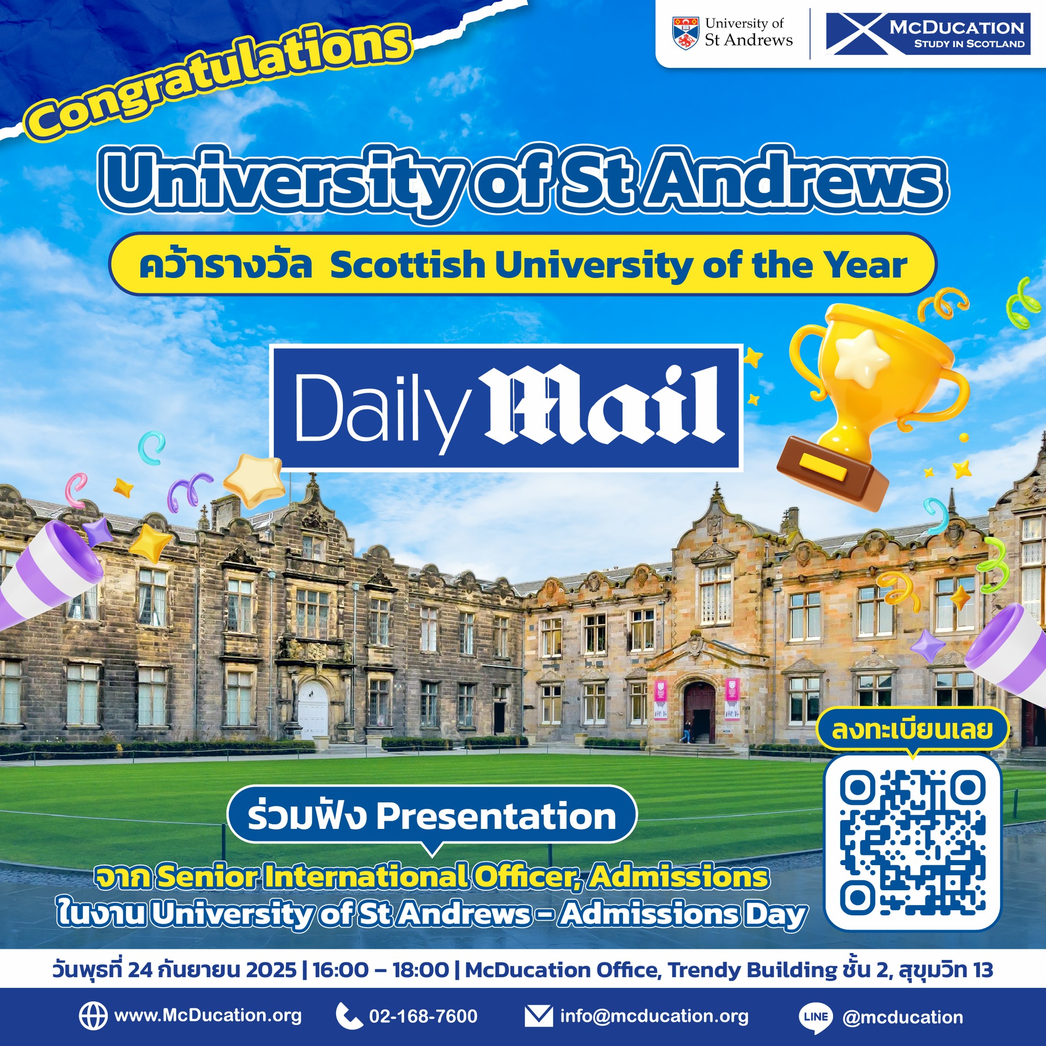 University of St Andrews คว้ารางวัล “Scottish University of the Year”